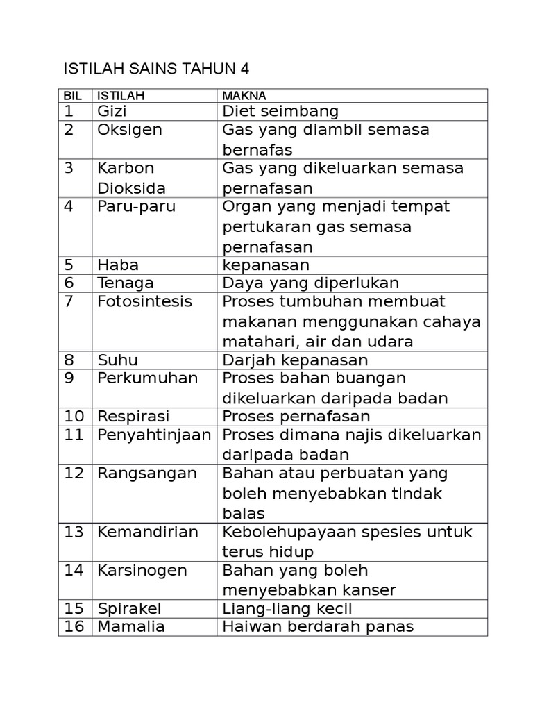 . Fakulti Sains Teknologi terdiri daripada lima pusat pengajian dan setiap pusat pengajian ini telah menghasilkan buku istilah masing. Soalan peperiksaan bagi Tahun 1 yang ada ialah seperti berikut. D alam mata pelajaran sains banyak istilah yang digunakan.